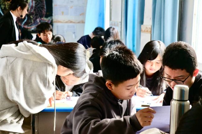 精准对接不同群体需求,用鲜活方式拆解非遗知识,是此次系列实践活动的核心亮点。团队统一采用“AI技术导入+原理具象拆解+分组协作实践”的教学框架,同时结合中学生与低龄儿童的认知特点优化细节设计,让专业非遗课程既严谨又易懂、既有趣又有料。1月23日,汕尾市南塘中学的课堂上,一段融合AI技术的现代皮影短片刚播放完毕,便引发七年级学生的阵阵惊叹。大学生“导师”们趁热打铁,通过图文展示、动图演示结合实物拆解的方式,将皮影“骨眼连接、木棍操控”的关节活动原理讲得清晰透彻。实践环节中,七年级学生小陈第一次绘画皮影“猪八戒”,起初总是画不好花纹,急得鼻尖冒汗。“仔细观察,一笔一画慢慢来。”在大学生“导师”的手把手指导下,他反复观察花纹设计,终于完成了“八戒”皮影的绘画。当天,六个小组的学生均完整完成临摹设计、安全剪裁、组装调试到舞台展演的全流程,成功实现从“非遗观看者”到“文化创作者”的身份转变。