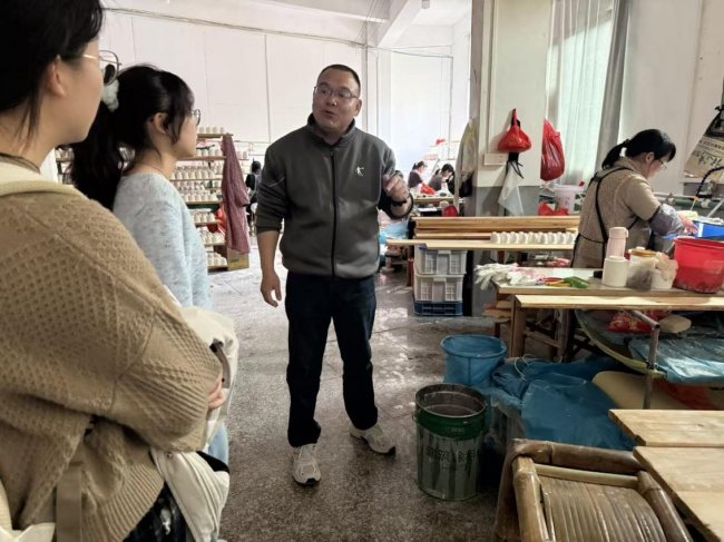 实践期间,队员走访德化瓷艺城、嘉裕瓷业车间及红旗坊街区,多维度观察产业脉动。在瓷艺城这一“瓷都文化会客厅”,队员欣赏了包括王少真在内的多位大师精品,陶瓷作品多次作为国礼亮相外交舞台,彰显文化自信;在嘉裕瓷业,队员们近距离观摩注浆、修坯、素烧等制瓷工序,工人们专注投入、精益求精。企业负责人坦言,德化陶瓷作为文化符号和地方支柱产业,为城镇化与对外贸易注入强劲动力;但亦面临原料不可再生、部分传统技法失传、中低端产能过剩及外部贸易环境压力等现实挑战。但正是一线从业者对家乡与手艺的赤诚,支撑起德化瓷的品质口碑;走进由国营红旗瓷厂改造的红旗坊街区,红砖墙、烟囱与钢架等工业遗存被完整保留。1951年建厂的红旗瓷厂曾成功恢复失传数百年的“建白瓷”工艺,被誉为德化陶瓷工业化的“活化石”。如今,窑火虽熄,老厂区转型为集艺术展览、文创市集、手作体验、青年创业于一体的文旅空间,让传统工业遗产在功能再造中续写城市记忆。