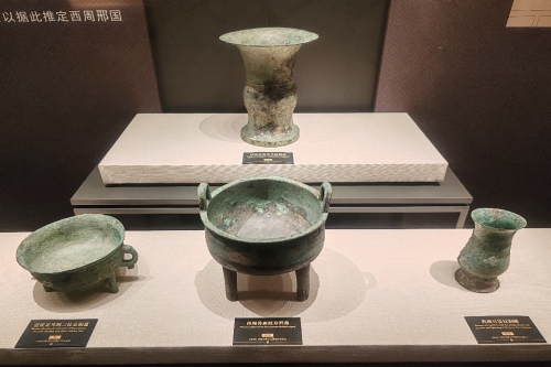 实践团成员率先步入“井地长风——邢台历史文化展”,将目光聚焦于邢国史迹展厅。作为西周时期雄踞北方的重要封国,邢国由周公之子受封建立,不仅承担着防御戎狄的军事使命,更是连接中原与北方地域的文化纽带。展厅内,兽面纹分档鼎、弦纹双耳环三柱足铜簋等青铜文物静静陈列,斑驳的纹路间尽显昔日邢国的礼乐辉煌。队员们从展板资料中了解到,上世纪九十年代信都区葛家庄邢国墓地的考古发现意义重大,出土的玉戈、刻辞卜骨等珍贵文物,为解决学术界多年来关于邢国的争议问题提供了关键依据,让大家仿佛穿越时空,触摸到三千年前邢襄大地上的文明印记。