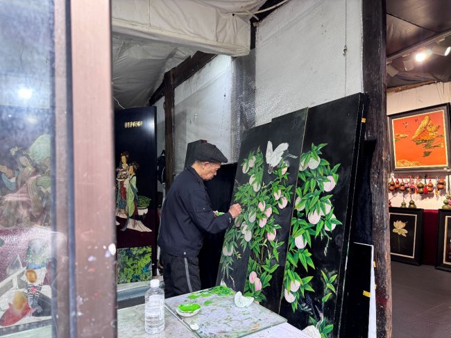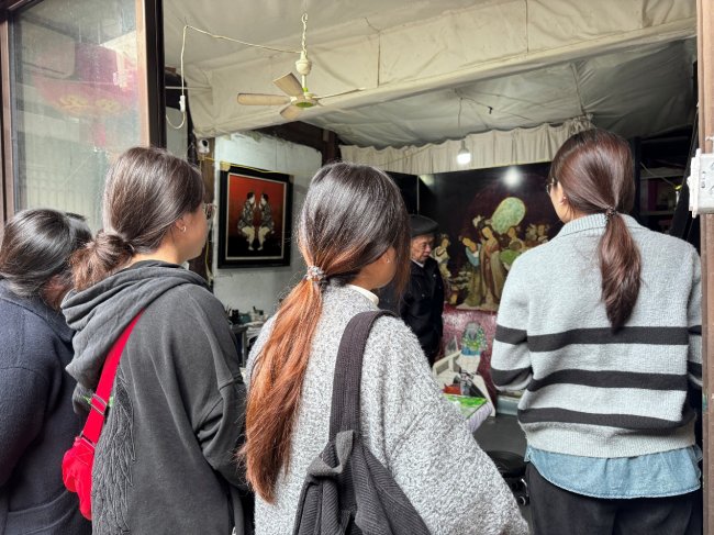 青瓦黛墙,墨色生香。在古朴雅致的工作室里,年逾九旬的郑崇尧老先生正凝神创作,一笔一画,沉稳而专注。他向同学们娓娓道来:“漆画不是一蹴而就的,一幅作品往往要耗费数月甚至数年,没有耐心和恒心,根本做不成事。”