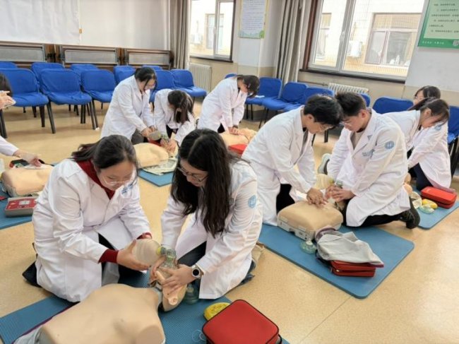 在培训现场,医院的专业带教医师为队员们组织了基于HEARTSAVER国际急救认证体系的集中强化训练。培训内容紧扣公众急救需求,涵盖了心肺复苏(CPR)的规范操作、自动体外除颤器(AED)的快速使用流程,以及针对气道异物梗阻的海姆立克急救法等核心实用技能。带教医师们细致入微地讲解每一个操作要点,反复进行标准流程示范,并对每位队员的操作手法进行逐一纠正,确保动作规范、到位。培训结束后,团队全体成员参与了严格的技能考核。所有队员不仅熟练掌握了核心急救技能的完整操作流程,更能深刻理解其背后的医学原理,具备了清晰、准确地进行教学演示与要点讲解的能力,为后续面向公众开展科普教学打下了坚实基础。