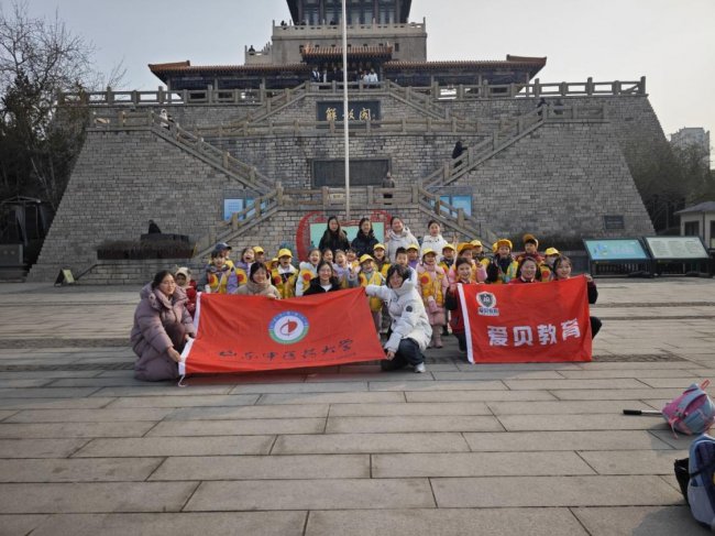 红色足迹不停歇,初心使命永相传。为推动红色基因代代相传,让红医精神浸润青少年心灵,团队在走进解放阁时,特意邀请了小朋友们一同参与,让红色种子在青少年心中生根发芽、茁壮成长。解放阁矗立在济南战役攻城突破口之上,陈毅元帅亲笔题写的“解放阁”鎏金大字熠熠生辉,这里不仅承载着泉城济南解放的光辉记忆,更是红医精神的重要淬炼之地。团队成员牵着小朋友的手,耐心细致地讲解解放阁的由来与济南战役的历史背景,在镌刻着3764位烈士英名的纪念碑前,带领小朋友们一同默哀致敬,用通俗易懂的语言,生动讲述了革命烈士们浴血奋战、为国捐躯的英雄故事。在济南解放纪念馆内,成员们重点为小朋友们讲述了1948年济南战役期间,战地医护人员以门板为手术台、以盐水为消毒水,冒死穿梭于炮火之间救治伤员的红医故事,让孩子们真切理解红医精神中“政治坚定、救死扶伤、艰苦奋斗、无私奉献”的核心内涵。凭栏远眺泉城济南的繁华新貌,成员们与小朋友们一同感悟和平生活的来之不易,让爱国情怀、敬医之心深深扎根在青少年心中。