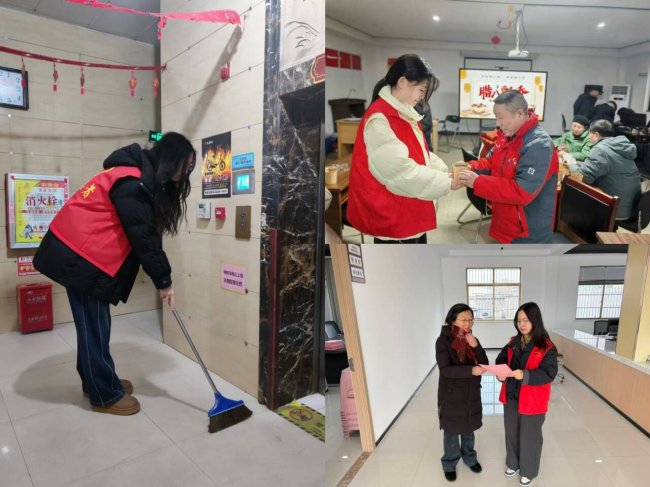 同期,队员杜哲伟在万科城社区服务中心参与节日安全宣传与网格化管理。腊八节期间,他参与"浓浓爱心粥,暖暖腊八情"赠粥活动,从熬制红枣桂圆粥到为居民盛粥、维持秩序,全程投入;面对"不放烟花少了年味"的质疑,他与伙伴们分发禁燃禁放传单,用环保烟花视频、电子鞭炮案例推荐绿色过节方式,并协助网格员进行节前安全排查,检查楼道消防、清理杂物、排查独居老人水电安全。