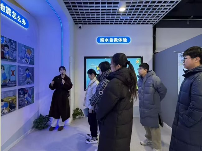在盐城市青少年成长安全教育馆,王钰堃担任讲解员。他带领孩子们体验“火灾现场模拟逃生”和“心肺复苏急救”。烟雾弥漫中,他大声提醒“弯腰、捂住口鼻”,站在关键位置引导方向。心肺复苏教学时,他跪在模型人旁手把手纠正动作。当家长反馈“孩子回家一直念叨您教的急救步骤”,他深感欣慰。“每一次讲解,都是在为孩子们的生命安全增添一份保障。”