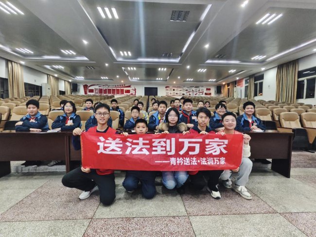 近日,湘潭大学“送法到万家”普法志愿队的汪佳乐、刘宗新、郭亚鑫、赵佳琪四位宣讲人,走进湘潭县云龙中学综合楼六楼会议厅,为300名七年级学生带来“法护青春,与法同行”专题普法活动,用专业力量推动优质普法资源向基层下沉。