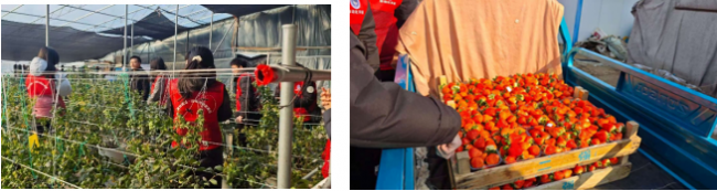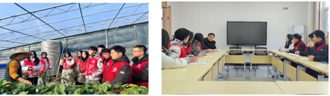 带着调研问题与座谈思考,实践团走进草莓种植大棚,开展沉浸式实地考察与体验。在草莓大棚内,成员们观察立体种植架排布、研究智能温控系统的数据监测流程,亲手参与草莓采摘与生长状态记录,结合专业知识思考环境调控优化方案