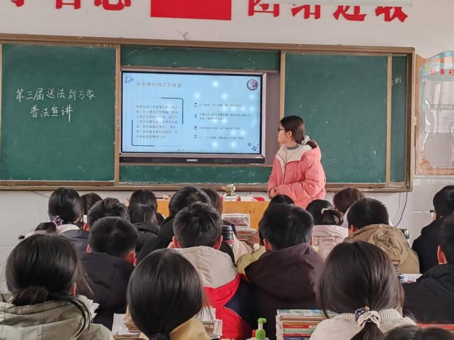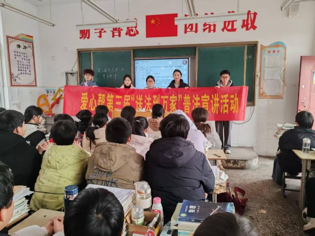 为筑牢校园安全防线,提升青少年法治素养,2月28日下午,来自湘潭大学的第三届送法到万家普法宣讲活动“爱心帮”普法宣讲队走进河南省南阳市邓州市裴营乡一初中,开展了一场以“守护少年的你”为主题的《未成年人保护法》普法宣传活动。活动通过“大课堂集中讲、小课间精准聊、宣传单随时看”的模式,将法律知识精准送达每一位学生。