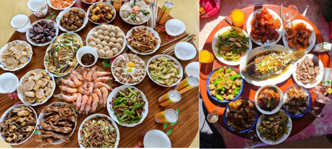 吉林延边年夜饭彰显朝鲜族特色,米肠、辣白菜等传统风味鲜明,既体现了当地群众利用发酵技艺抵御寒冬的生活智慧,也展现出少数民族饮食文化的独特魅力与传承活力;山东烟台年夜饭以海鲜为主打,清蒸大虾、鲍鱼等食材新鲜、口味清鲜,生动反映出沿海地区依托海洋资源实现发展、人民生活水平不断提升的生动实践。