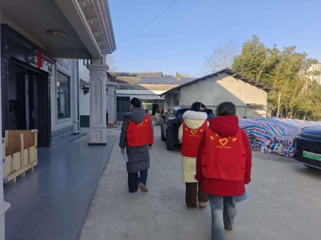图 1为志愿者们入户宣传。谢春思 供图