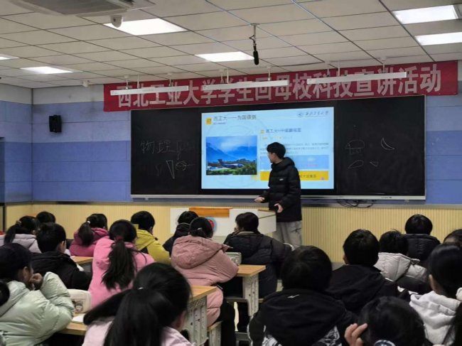 活动在西工大招生宣传片的震撼画面中拉开序幕。宣传片中,一架架由西工大参与研制的国之重器直冲云霄,让同学们目不转睛。随着“总师摇篮”的历史画卷徐徐展开,一代代工大人“为国铸剑”的坚守故事深深打动了在场师生。惊叹声与掌声交织,孩子们的眼神中既有对顶尖学府的崇敬,更充满了对即将揭晓的伯努利原理与飞行奥秘的热切期待。