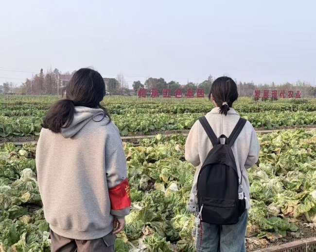 图为我队成员实地勘察农基地产品和发展状况。 彭慧 供图