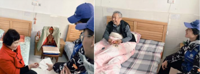 在仪征海阳养老院,实践团成员带着慰问品与真诚心意,看望慰问院内老人,用陪伴与关怀温暖长者心田。活动中,团队特别拜访了院内一位革命老战士,围坐在一起认真聆听老人讲述烽火岁月中的革命经历与奋斗故事。