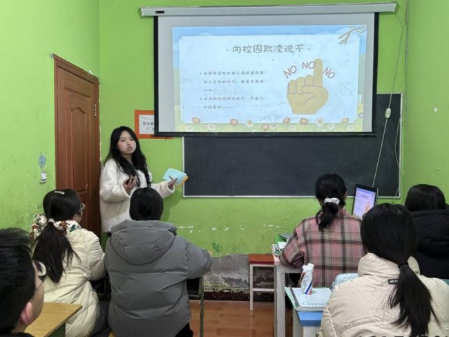 为深化未成年人法治教育,筑牢校园安全防线,南京师范大学中北学院“繁星聚爱,法援同舟”调研队近日走进四川省广元市阳光教育学校,开展了一场以“向校园暴力说‘不’”为主题的专项法治宣讲活动。此次活动是团队将线上普法、线下宣讲结合的一次实践,旨在为乡村孩子带来直接、生动的法治教育。