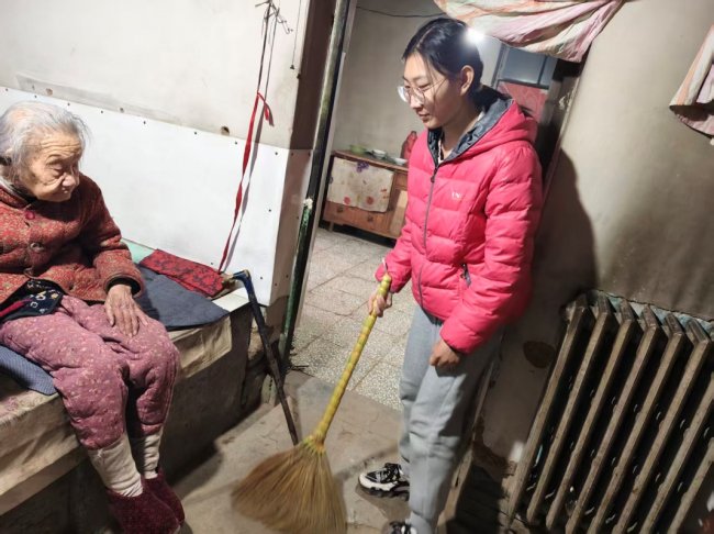 成员还为老人捶背按摩,打扫卫生,讲解冬季养生知识,用温暖的陪伴驱散了老人的孤独。