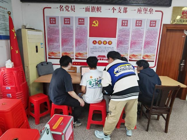 (团队成员在新村村委讨论解决方案)