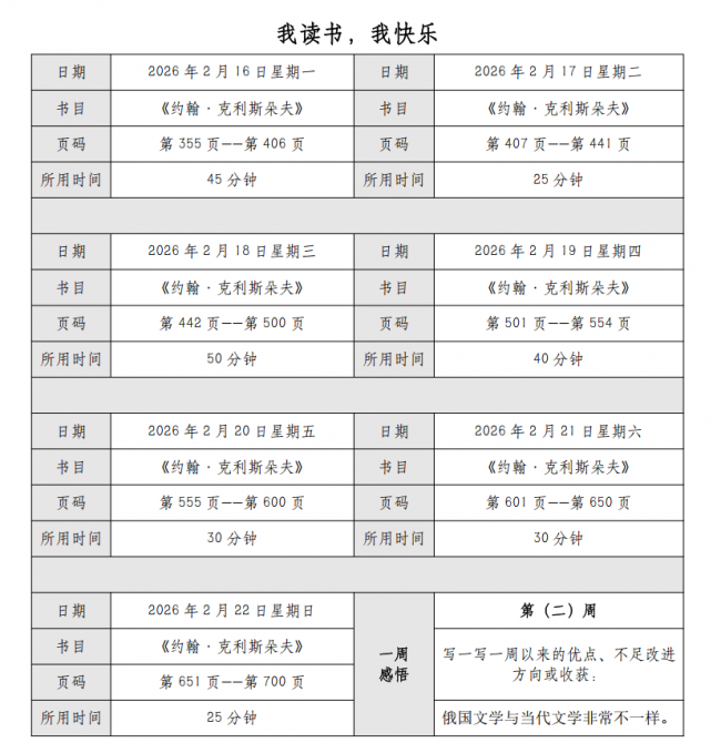 图 3 阅读打卡记录表
