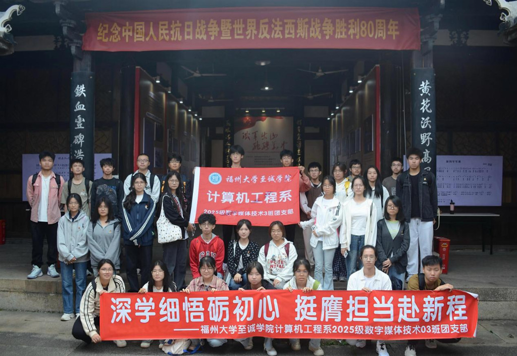 在时代的浪潮中,青春恰似火,扬帆正当时。为深入学习贯彻习近平新时代中国特色社会主义思想,贯彻落实党的二十大精神,激励广大团员青年坚定理想信念,厚植爱国情怀,深刻把握中国人民抗日战争暨世界反法西斯战争胜利80周年的伟大历史意义,福州大学至诚学院2025级数字媒体技术3班团支部积极响应号召,开展了一系列丰富多彩、意义非凡的团立项活动。本次活动以“奋进新征程,青春勇担当”为主题,分别在新四军驻福州办事处旧址、福州市委旧址及冰心林觉民故居开展了团立项活动,在校园内外掀起了青春奋进的热潮。