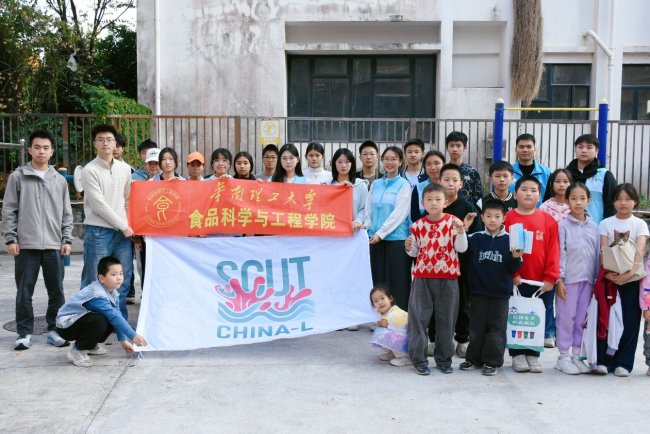 华南理工大学食品科学与工程学院实践队与社区小朋友合影留念
