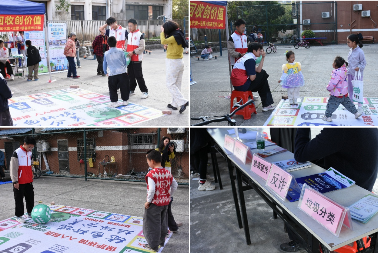 除了丰富的食品安全科普游戏,集市还设置了垃圾分类游戏摊位和免费义剪摊位。垃圾分类游戏中,居民在规定时间内将模拟垃圾卡片投入对应垃圾桶,在队员指导下纠正分类误区;免费义剪摊位前更是排起长队,贴心的服务赢得居民一致好评。