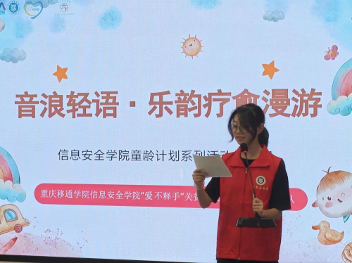为进一步丰富留守儿童的精神文化生活,提升其艺术感知力和创造力,重庆移通学院信息安全学院“爱·不释手”关贫助残志愿服务专项支队携手綦江区快乐家社会工作服务中心于10月18日9:30在双龙社区开展“音浪轻语·乐韵疗愈漫游”童龄计划系列活动第五期。本次活动以音乐为载体,融合律动、乐器、绘画,为孩子们带来一场沉浸式的艺术疗愈体验。