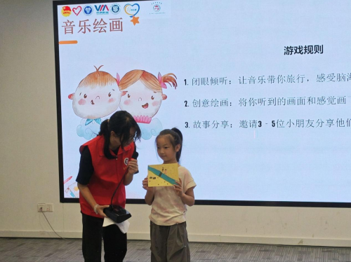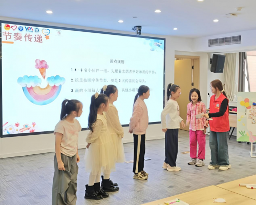 童龄计划系列活动第五期正式开始。音乐律动环节,孩子们跟随经典曲目,尽情舞动身体,释放天真活力;乐器认知环节,志愿者通过图片与音频结合的方式,介绍了多种乐器,孩子们踊跃回答,现场气氛热烈;节奏传递游戏更是将活动推向高潮,孩子们分组协作,模仿并传递节奏,锻炼了专注力与团队意识。