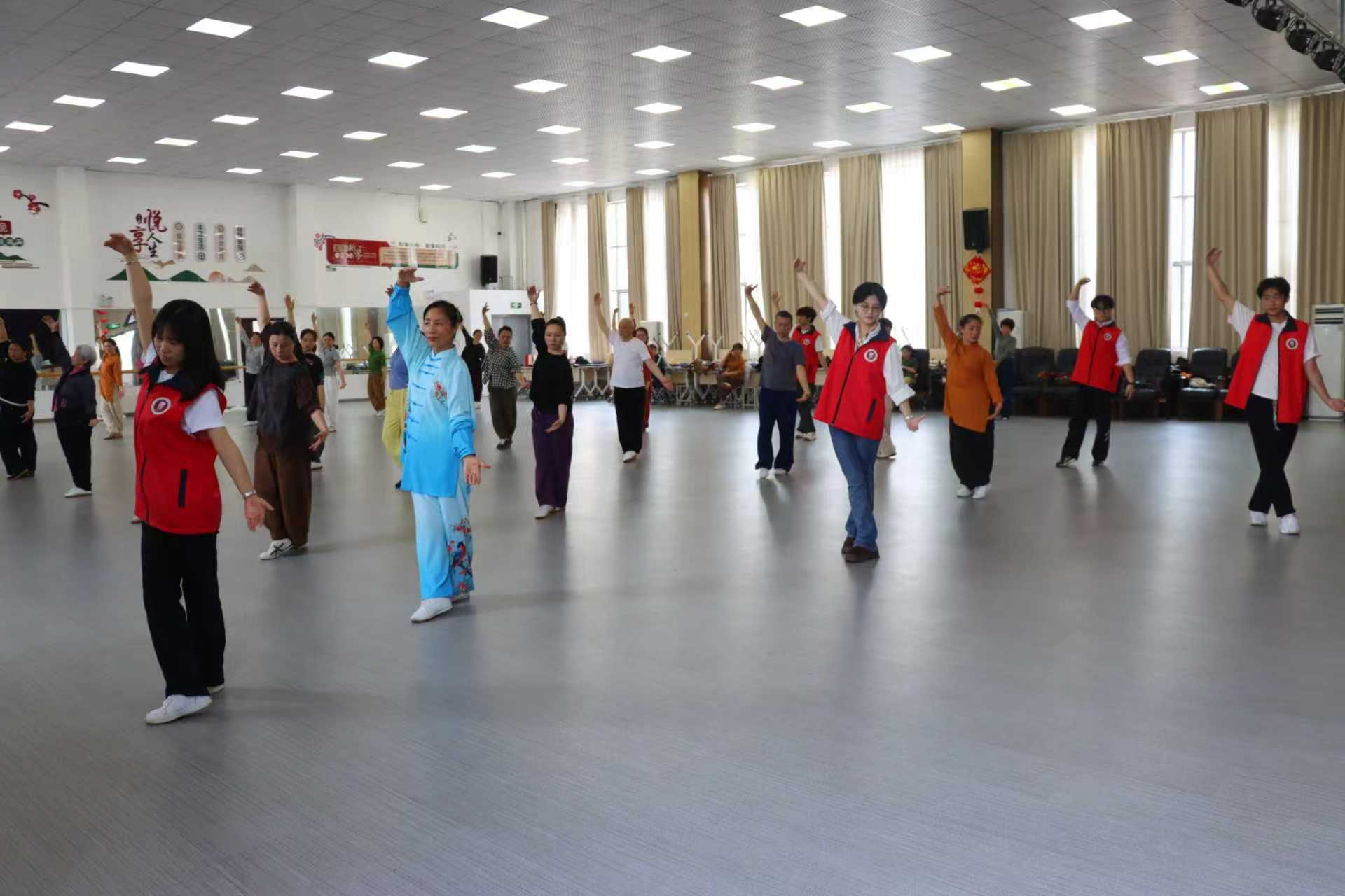 活动现场,团队成员依托体育教育专业知识与运动康复实践经验,结合老年群体身体特点与运动需求,精心设计了一系列科学、安全、易学的康养课程。针对老年人常见的体态不佳、关节僵硬、防跌倒意识薄弱等问题,团队成员现场示范并手把手教学改良版太极、八段锦等传统体育功法,动作舒缓柔和、简单易记,在帮助老年朋友舒展筋骨、调节身心的同时,有效提升身体柔韧性与平衡能力。