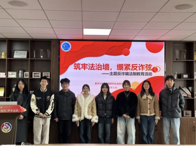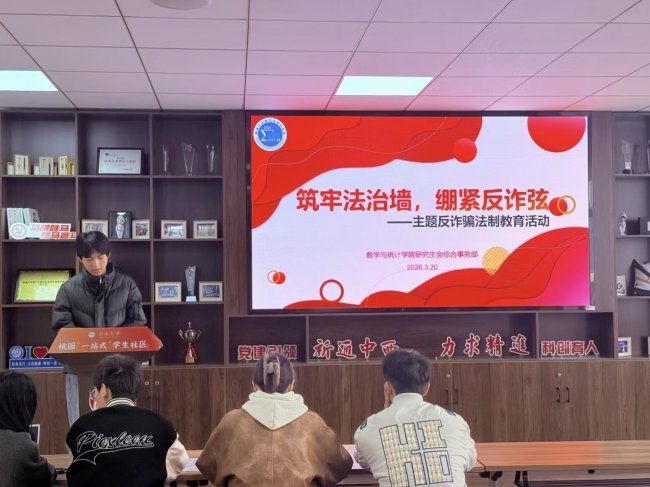 为深入贯彻党的二十届三中全会精神,扎实落实习近平法治思想,强化新时代青年法治观念,切实提升研究生群体反诈防诈意识与安全防护能力,2026年3月20日,南通大学数学与统计学院成功举办“筑牢法治墙,绷紧反诈弦”反诈骗法治宣讲比赛。