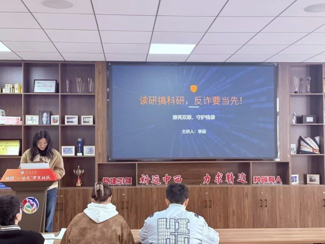 二等奖获得者中,王心怡、陈佳雪同学聚焦校园高发诈骗场景,系统梳理 “校园贷”“论文代发诈骗”“网购退款诈骗” 等常见类型,重点分享 “三不一多”(不轻信、不透露、不转账、多核实)等可操作、易记忆的反诈技巧,为研究生群体提供实用易懂的防骗指引;李辰、王乃诚同学则立足学术科研场景,精准聚焦研究生论文发表、期刊投稿、学术交流等环节的诈骗风险,结合真实学术诈骗案例,揭露不法分子利用研究生学术需求实施诈骗的套路,提醒同学们提高学术警惕,严守学术规范,谨防学术诈骗陷阱。